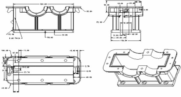 (3)    增加三維視圖。第一步順序點按DRAWING(繪圖)子菜單項Views(視圖)Add view(增加視圖)|General(一般)|Full View(全視圖)|No Xsec(無剖面)|Scale(比例)|Done(完成);第二步在圖面右下角三維視圖的位置點按左鍵;第三步輸入圖形比例,零件的三維試圖將會出現,系統形成了零件的三維視圖。